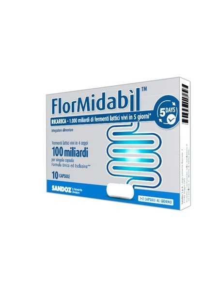 Un ciclo di Flormidabìl Ricarica comporta l'assunzione di 2 capsule al giorno (in un'unica soluzione), per un periodo di 5 giorni, da sciogliere direttamente in bocca oppure da deglutire con un bicchiere di acqua. È possibile assumere anche solo 1 capsula al giorno in maniera continuativa. Assumere il prodotto nel momento più comodo della giornata (es. appena prima o subito dopo un pasto) rispettando però un intervallo di almeno tre ore dall'eventuale assunzione dell'antibiotico.