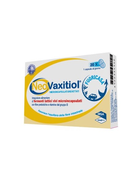 Integratore alimentare a base di fermenti lattici vivi microincapsulati e vitamine del gruppo B. Favorisce l'equilibrio della flora intestinale. NeoVaxitiol è indicato per favorire il ripristino del fisiologico equilibrio della flora batterica intestinale che può essere alterato da squilibri alimentare o terapie antibiotiche. Inoltre, la vitamina B6 contribuisce alla normale funzione del sistema immunitario.
