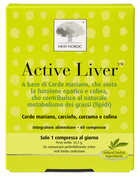 Integratore alimentare a base di cardo mariano, che aiuta la funzione epatica. Le compresse Active Liver sono prodotte in Svezia e contengono estratti di cardo mariano, carciofo, curcuma e pepe nero, con l'aggiunta di colina. Il cardo mariano e il carciofo supportano la naturale funzione epatica. La colina contribuisce al normale metabolismo dei lipidi ed al mantenimento della normale funzione epatica.