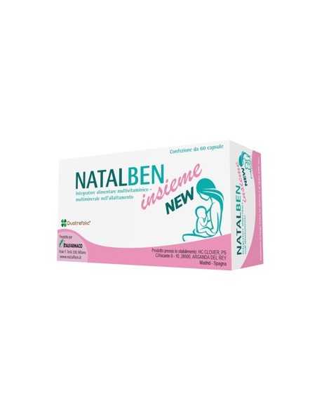Natalben Insieme NEW è un integratore alimentare contenente acido folico e altre vitamine del gruppo B, vitamine A, C, D ed E, biotina, minerali, oligoelementi e DHA, studiato per supplementare l'apporto nutrizionale della donna durante l'allattamento materno.
