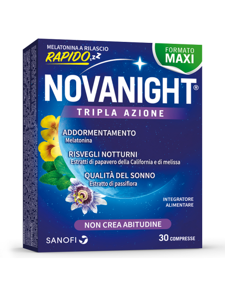 Grazie alla nuova tecnologia di NOVANIGHT, la melatonina viene rilasciata più rapidamente, entro i primi 15 minuti di assunzione.
