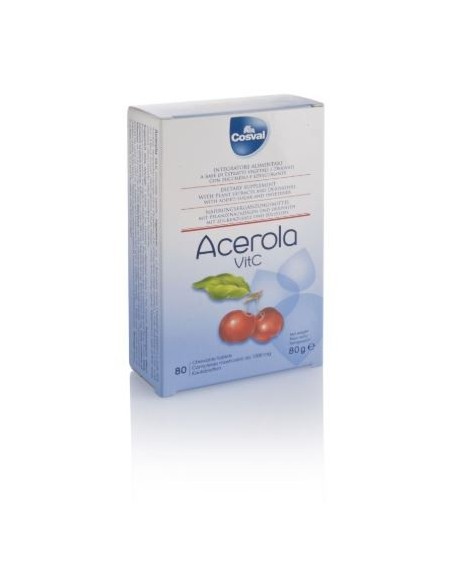 Integratore alimentare a base di estratti secchi di acerola (Malpighia glabra L.) e rosa canina (Rosa canina L.) che svolgono azione di sostegno e ricostituente coadiuvando le naturali difese dell’organismo rendendo disponibile vitamina C (Acido L-ascorbico). La presenza di ribes nero (Ribes nigrum L.) favorisce il benessere di naso e gola. Ogni tavoletta masticabile, di gusto gradevole, rende disponibili 125 mg di vitamina C (25% RDA); tale nutriente - nella fattispecie - contribuisce alla protezione delle cellule dallo stress ossidativo.