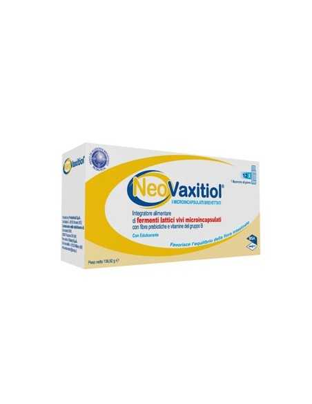 Integratore alimentare a base di fermenti lattici vivi microincapsulati e vitamine del gruppo B. Favorisce l'equilibrio della flora intestinale. NeoVaxitiol è indicato per favorire il ripristino del fisiologico equilibrio della flora batterica intestinale che può essere alterato da squilibri alimentare o terapie antibiotiche. Inoltre, la vitamina B6 contribuisce alla normale funzione del sistema immunitario.