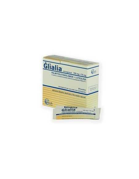 Alimento a fini medici speciali. Senza: glutine, lattosio, zuccheri.Glìalia è da utilizzare sotto controllo medico in soggetti con disturbi sostenuti da processi neuroinfiammatori associati a: eventi ischemici transitori (TIA); stati post-ictali su base ischemica; stati post-traumatici del SNC; stati di declino cognitivo (Mild Neurocognitive Disorder - Mild-NCD); demenze in fase iniziale; parkinsonismi in fase iniziale; malattie infiammatorie demielinizzanti; malattie del motoneurone; stati di alterazione dell'umore.