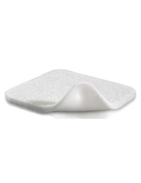 Film esterno in poliuretano permeabile al vapore acqueo e impermeabile ai liquidi e ai batteri. Tampone assorbente e flessibile in schiuma di poliuretano a celle aperte ad assorbimento verticale. Strato di contatto con la ferita in silicone morbido (Tecnologia Safetac).