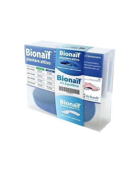 Bionaif Kit Equilibrio è indicato per chi soffre di problemi posturali, mal di schiena, patologie delle ginocchia e dei piedi. Ogni Kit Equilibrio contiene 1 paio di Bionaif Plantare Attivo e 1 paio di Bionaif Plantare Attivo Relax della misura corrispondente.
