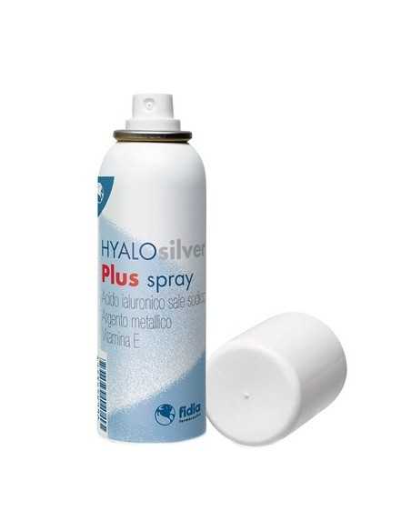 Trattamento delle lesioni cutanee non infette (es. abrasioni, escoriazioni, fissurazioni, tagli, piccole ferite chirurgiche, scottature localizzate di primo e secondo grado), nel piede diabetico, nel piede d'atleta e nelle lesioni da decubito. Hyalosilver Plus Spray è una sospensione spray per uso topico contenente acido ialuronico (HA), argento metallico e vitamina E. L'acido ialuronico e l'argento sono uniti in una matrice (caolino e amido) con proprietà assorbenti. L'assorbimento degli essudati crea un ambiente che facilita il naturale processo di rigenerazione tissutale formando, insieme all'HA e argento, una barriera protettiva contro la penetrazione microbica. L'azione filmogena della vitamina E, coadiuvando il processo di riepitelizzazione, favorisce il ripristino delle condizioni ottimali di idratazione della cute.