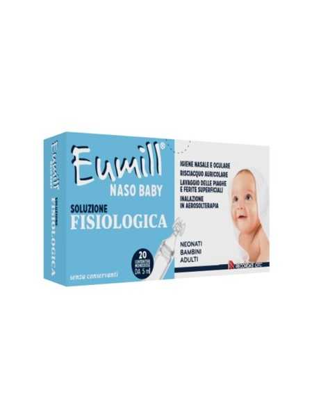 Soluzione fisiologica sterile, senza conservanti, non iniettabile. Presentata in contenitori monodose. Eumill Naso Baby soluzione fisiologica è igienica, sicura e di facile utilizzo.