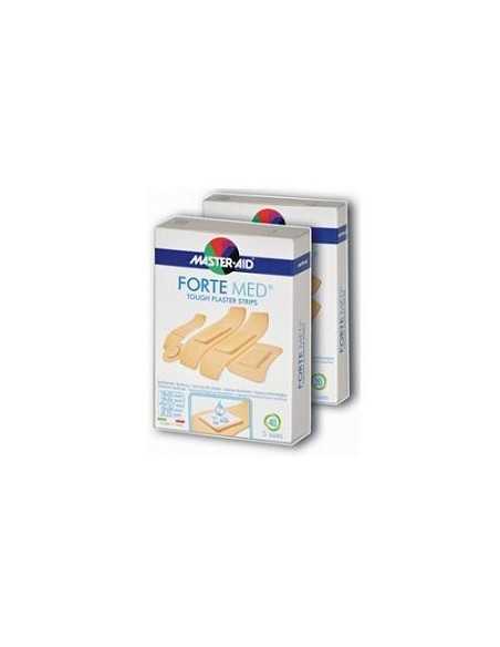 Dispositivo medico CE 0373. Cerotti in striscia a protezione elevata. Tampone con disinfettante (clorexidina digluconato). FORTE med offre una elevata protezione della ferita dagli agenti esterni (sporcizia, batteri) grazie ad un supporto particolarmente resistente. FORTE med grazie alla microperforazione consente la traspirazione della cute evitando processi di macerazione. L'adesivo ipoallergenico è particolarmente indicato anche per le pelli più sensibili.Caratteristiche tecniche