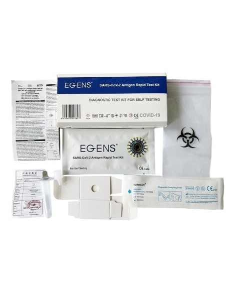 1 cassetta test, 1 tampone sterilizzato, 1 provetta d'estrazione con spugna, 1 sacchetto di biosicurezza, 1 manuale d'istruzione, 1 portacarte.