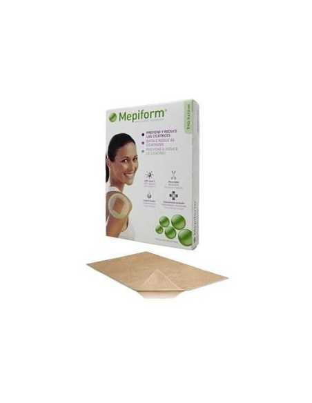 Dispositivo Medico CE, classe I. Medicazione in silicone morbido con Tecnologia Safetac, sottile, flessibile, delicata e discreta. Mepiform è utile per prevenire, appiattire, ridurre e ammorbidire cicatrici ipertrofiche e cheloidi, sia di nuova che di vecchia formazione. Grazie alla Tecnologia Safetac, aderisce delicatamente alla cute fragile e non causa dolore al momento della rimozione. Può essere indossata durante tutte le attività quotidiane. È impermeabile e riutilizzabile, può essere indossata fino a 7 giorni. Il suo colore è così simile al colore della pelle da renderla praticamente invisibile. Clinicamente testata.Modalità d'uso