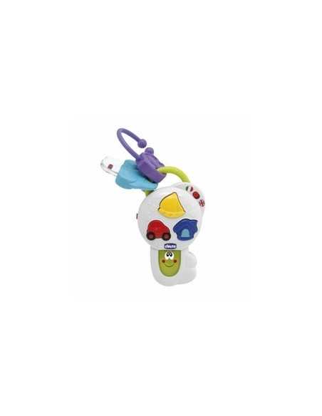 Chiave bilingue con effetti luminosi ad intermittenza e 24 contenuti: effetti sonori, prime parole, brevi frasi e filastrocche in italiano e in inglese. Con anello per fissare il gioco al passeggino. Pile: 2x AA 1.5 V.