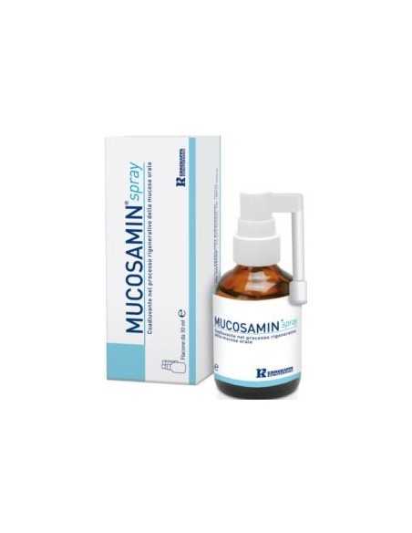 Mucosamin è un dispositivo medico ad azione prevalentemente protettiva delle mucose orali, realizzato in conformità alla Direttiva 93/42/CEE MDD. Il prodotto contiene acido ialuronico, componente principale del tessuto connettivo ed aminoacidi destinati a favorire la formazione del collagene.