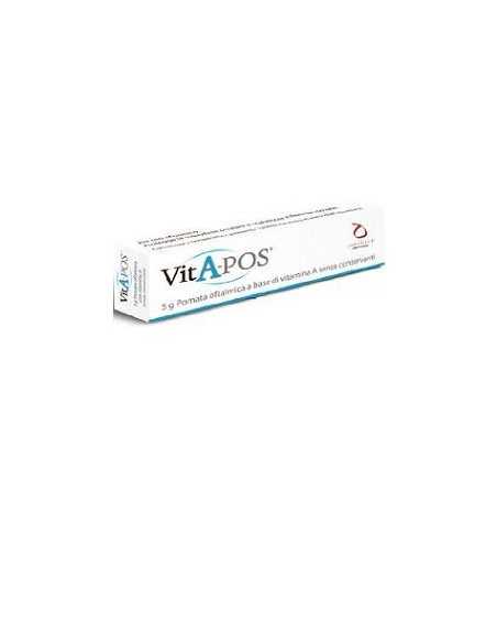 Dispositivo Medico CE, classe IIa, a base di vitamina A. Pomata oftalmica sterile a base di vitamina A senza conservanti. Grazie alla sua particolare composizione si applica facilmente sulla superficie oculare. VitA-POS protegge la superficie oculare e stabilizza il film lacrimale. La vitamina A in essa contenuta è un costituente naturale del film lacrimale che favorisce una buona tollerabilità della pomata oftalmica e assicura la completa miscelazione con le lacrime. Allevia la sensazione di bruciore, secchezza o stanchezza oculare. Facilita infine lo scorrimento delle palpebre sulla superficie corneale e congiuntivale.