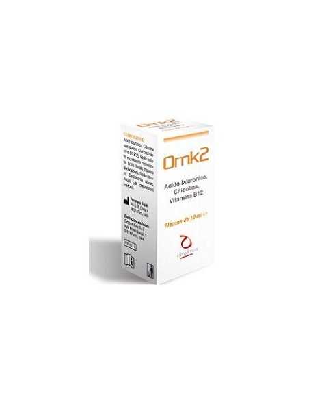 Dispositivo medico CE, classe IIa, a base di acido ialuronico, citicolina e vitamina B12. OMK2 è una soluzione oftalmica allo 0,2% di acido ialuronico ad alto peso molecolare, ottenuto per sintesi biotecnologica. L’acido ialuronico, dà origine a soluzioni mucomimetiche, mucoadesive e viscoelastiche, utili per migliorare la stabilità del film lacrimale, così da mantenere lubrificata, idratata e protetta la superficie oculare. Inoltre le soluzioni a base di acido ialuronico sono in grado di instaurare un microambiente favorevole ai processi di riparazione della superficie oculare nei casi di danno agli epiteli corneale e congiuntivale. La presenza di citicolina in OMK2 conferisce un utile e favorevole supporto strutturale nel ripristino dell’integrità delle membrane cellulari danneggiate anche da patologie oftalmiche degenerative (ad es. glaucoma, retinopatia diabetica). La cianocobalamina (vitamina B12) favorisce infine la crescita delle cellule dell’epitelio corneale, protegge le cellule dall’azione dei radicali liberi ed è un elemento importante per il mantenimento di una corretta funzionalità della superficie oculare.
