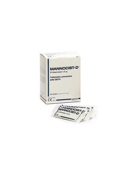INDICAZIONI: Mannocist-D bustine, a base di D-Mannosio, è un dispositivo medico in grado di inibire l'adesione dei batteri responsabili delle infezioni delle vie urinarie a livello dell'epitelio uretrale e vescicale, di favorirne l'eliminazione tramite le urine e di limitare quindi l'insorgenza di infezioni. Il D-Mannosio può essere utilizzato sia nelle infezioni acute delle vie urinarie, sia nelle loro recidive. L'uso concomitante di Mannocist-D con antibiotici e antimicrobici può favorire la funzionalità di questi ultimi aumentando l'aderenza del paziente alla terapia.