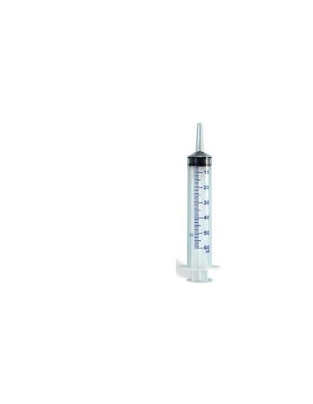 Cilindro trasparente per un corretto e facile dosaggio. Pistone con dispositivo di fine corsa per evitare la fuoriuscita del cilindro. Cono idoneo all'inserimento su vari tipi di cateteri. Per lavaggi uretrali. Capacità 60 ml.Formato
