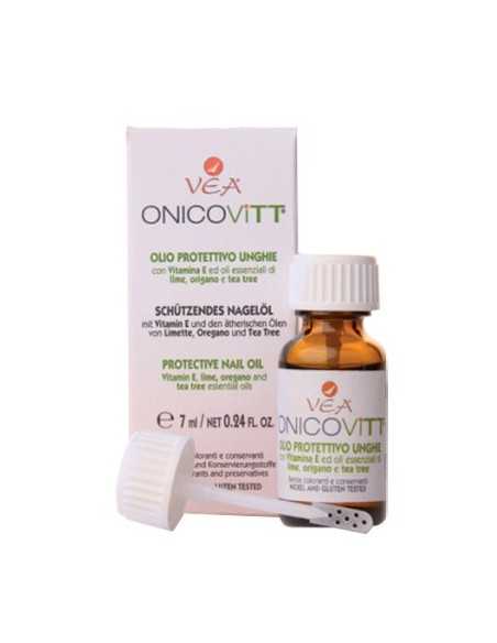 Olio protettivo ungueale antiossidante con vitamina E ed oli essenziali di lime, origano e tea tree. Vea Onicovitt è un olio innovativo per il benessere delle unghie costituito da vitamina E, antiossidante, e da una miscela brevettata di oli essenziali (lime, origano, tea tree) che favoriscono l'azione antimicrobica. Non contiene acqua, conservanti, eccipienti e coloranti, per minimizzare i rischi di allergia. Mantiene in buono stato le unghie e la cute periungueale. Indicato nei casi di alterazioni ungueali da agenti esterni.