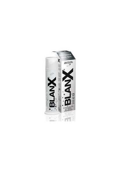 Dispositivo Medico CE. Pasta dentifricia con un'azione contro le discromie dentali: protegge l'integrità dello smalto evitando l'adesione della placca e contrastando l'ingiallimento dentale. Grazie alla particolare sinergia tra Licheni Artici e l'azione degli Ioni Fluoro, Blanx Med Denti Bianchi è una pasta dentifricia nota per avere un'azione remineralizzante e sbiancante senza azione abrasiva sullo smalto.Modalità d'uso