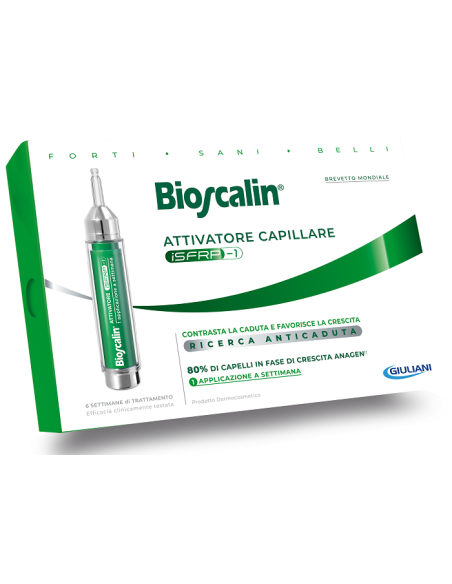 Quando i capelli sono sottoposti a stress (cambio di stagione, diete, stress psicofisico, esposizione solare ecc.) si può verificare un'alterazione del regolare ciclo di vita dei capelli che comporta il rallentamento della crescita e la conseguente caduta dei capelli. Dalla ricerca Giuliani, leader nell'anticaduta, una nuova scoperta scientifica: il ruolo della proteina SFRP1 presente nel bulbo pilifero responsabile di inibire e di frenare la crescita dei capelli. Nasce così Bioscalin attivatore capillare con iSFRP1, molecola anticaduta di ultima generazione che consente di combattere la caduta dei capelli in modo innovativo. L'attivo iSFRP1, brevettato da Giuliani a livello mondiale, viene rilasciato all'interno del centro di comando del capello in modo mirato e prolungato grazie all'esclusiva tecnologia Bioscalin-ION per il massimo assorbimento.