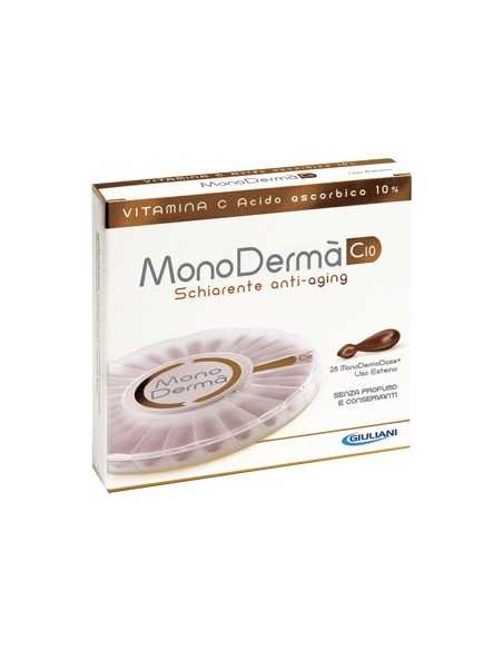 Prodotto dermatologico contiene vitamina C pura alla concentrazione del 10%. La vitamina C è un fattore nutritivo indispensabile che, non essendo sintetizzato dall’organismo umano, deve essere somministrato dall’esterno. L’applicazione topica di vitamina C è la via elettiva per compensare eventuali situazioni di deficit a livello cutaneo. L’acido L-ascorbico è la forma di vitamina C utilizzata dall’organismo, i cui benefici effetti per la pelle sono stati ampiamente descritti. Tra questi vanno segnalati la stimolazione della sintesi del collagene, la fotoprotezione da UVA e UVB, l’azione schiarente sulle macchie da iperpigmentazione e le proprietà antinfiammatorie. Per queste sue caratteristiche, la vitamina C (Acido L-Ascorbico) è indicata nel trattamento dell’invecchiamento cutaneo, delle discromie cutanee (anche come prevenzione di quelle post-laser) e come coadiuvante nel trattamento di alcune dermatosi a base infiammatoria. La monodermodose consente di avere una formula essenziale, sicura e ben tollerata dalla pelle, grazie alla totale assenza di conservanti e profumo. Utile nel trattamento delle discromie cutanee, delle macchie da iper-pigmentazione e del foto-danneggiamento. Ogni MonoDermaDose, essendo totalmente biodegradabile, può essere smaltita dopo l'uso con i rifiuti umidi o direttamente nell'acqua di scarico.