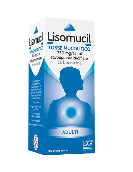 Sanguinamento gastrointestinale Sono stati riportati casi di sanguinamento gastrointestinale con l’uso di carbocisteina. Si raccomanda cautela negli anziani, nei pazienti con una storia di ulcere gastroduodenali o nei pazienti che assumono farmaci concomitanti noti per aumentare il rischio di sanguinamento gastrointestinale. In caso di sanguinamento gastrointestinale, i pazienti devono interrompere il trattamento con carbocisteina. Pazienti asmatici e debilitati Si raccomanda di prendere specifiche precauzioni in pazienti con grave insufficienza respiratoria, in pazienti con asma e con una storia di broncospasmo, nonché in pazienti debilitati. L’uso della carbocisteina provoca una diminuzione della viscosità del muco e un aumento della rimozione del muco, sia attraverso l’attività ciliare epiteliale, sia attraverso il riflesso della tosse. Pertanto, è previsto un aumento della tosse e dell’espettorato. L’uso di medicinali antitussivi inibisce il riflesso della tosse e aumenta il rischio di ostruzione delle vie aeree, a causa di un aumento dell’accumulo di muco nelle vie respiratorie. L’uso concomitante di questo medicinale con medicinali sedativi della tosse e/o medicinali che inibiscono la secrezione bronchiale (ad es. medicinali anti-muscarinici) non è raccomandato. LISOMUCIL TOSSE MUCOLITICO sciroppo con zucchero contiene 6 g di saccarosio per 15 ml di sciroppo (1 misurino dosatore o 1 cucchiaio). I pazienti affetti da rari problemi ereditari di intolleranza al fruttosio, da malassorbimento di glucosio-galattosio, o da insufficienza di sucrasi isomaltasi, non devono assumere questo medicinale. Da tenere in considerazione in persone affette da diabete mellito. L’eccipiente elisir aromatico di LISOMUCIL TOSSE MUCOLITICO sciroppo con zucchero contiene 200 mg di alcool etilico (etanolo) per dose di 15 ml (un misurino dosatore o un cucchiaio) che è equivalente a 4 mg/kg per dose di 15 ml di sciroppo. La quantità di alcool etilico in 15 ml di questo medicinale è equivalente a meno di 5 ml di birra o 2 ml di vino. La piccola quantità di alcol in questo medicinale non produrrà effetti rilevanti. Per chi svolge attività sportiva, l’uso di medicinali contenenti alcool etilico può determinare positività ai tests antidoping in rapporto ai limiti di concentrazione alcolemica indicata da alcune federazioni sportive. LISOMUCIL TOSSE MUCOLITICO sciroppo con zucchero e LISOMUCIL TOSSE MUCOLITICO sciroppo senza zucchero contengono metile para-idrossibenzoato che può causare reazioni allergiche (anche ritardate). LISOMUCIL TOSSE MUCOLITICO sciroppo senza zucchero contiene 90 mg di sodio per dose da 15 ml (1 cucchiaio) e 270 mg di sodio per la dose di 3 cucchiai al giorno equivalente rispettivamente a 4,5% e a 13,5% dell'assunzione massima giornaliera raccomandata dall'OMS che corrisponde a 2 g di sodio per un adulto. LISOMUCIL TOSSE MUCOLITICO sciroppo con zucchero contiene meno di 1 mmol (23 mg) di sodio per 15 ml di dose, cioè essenzialmente ‘senza sodio’.