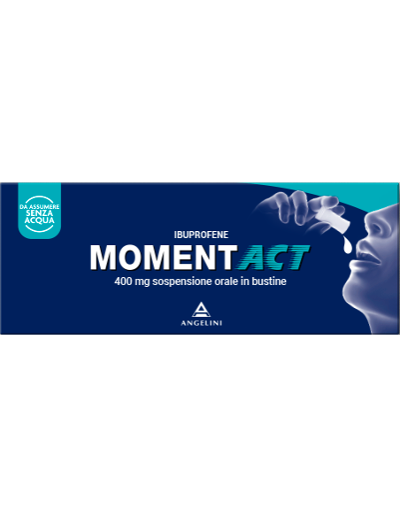 Posologia Adulti e adolescenti di età pari o superiore ai 12 anni: 1 bustina 2-3 volte al giorno. Non superare la dose di 1200 mg (3 bustine monodose) al giorno. Nel caso l’uso del medicinale sia necessario per più di 3 giorni negli adolescenti di età pari o superiore a 12 anni, o nel caso di peggioramento della sintomatologia, deve essere consultato il medico. Non superare le dosi consigliate. I pazienti anziani devono attenersi ai dosaggi minimi sopraindicati (vedere paragrafo 4.4). Gli effetti indesiderati possono essere minimizzati con l’uso della dose minima efficace per la durata di trattamento più breve possibile necessaria per controllare i sintomi (vedere paragrafo 4.4) Compromissione renale: nei pazienti con lieve o moderata riduzione della funzione renale, il dosaggio deve essere mantenuto il più basso possibile per la più breve durata necessaria a controllare i sintomi e la funzione renale deve essere monitorata. Compromissione epatica: nei pazienti con lieve o moderata riduzione della funzionalità epatica, il dosaggio deve essere mantenuto il più basso possibile per la più breve durata necessaria a controllare i sintomi e la funzione epatica deve essere monitorata. Momentact è controindicato nei pazienti con grave insufficienza epatica (vedere paragrafo 4.3). Popolazione pediatrica Momentact è controindicato nei bambini di età inferiore ai 12 anni (vedere paragrafo 4.3). Modo di somministrazione È possibile assumere Momentact a stomaco vuoto. Nei soggetti con problemi di tollerabilità gastrica, è preferibile assumere il medicinale a stomaco pieno.