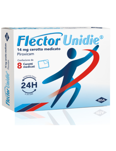 I livelli sierici raggiunti con FLECTOR UNIDIE sono risultati significativamente più bassi rispetto a quelli ottenuti mediante somministrazione orale ma con una forte variabilità individuale per cui non si può escludere l'insorgenza di effetti indesiderati sistemici soprattutto a livello gastroenterico. Gli analgesici, antipiretici, antiinfiammatori non steroidei, compreso il piroxicam, possono causare reazioni di ipersensibilità, potenzialmente gravi anche in soggetti non precedentemente esposti a questo tipo di farmaci. Queste comprendono attacchi d’asma, eruzioni cutanee, riniti allergiche e reazioni di tipo anafilattico. FLECTOR UNIDIE deve essere impiegato con cautela nei soggetti con malattie croniche ostruttive dei bronchi, rinite allergica o infiammazione della mucosa nasale (polipi nasali) nei quali sono più frequenti gli attacchi asmatici o le reazioni infiammatorie localizzate della pelle e della mucosa (edema di Quincke). Usare cautela in pazienti con anamnesi di ulcera peptica, in pazienti con anamnesi di emorragia gastrointestinale non secondaria alla somministrazione di FANS o con altri disturbi emorragici, in pazienti con morbo di Crohn o colite ulcerosa, con gravi disfunzioni epatiche o renali o con insufficienza cardiaca. L'uso prolungato o ripetuto di prodotti per uso cutaneo può dare origine a fenomeni di sensibilizzazione. In presenza di reazioni d'ipersensibilità è necessario interrompere la terapia. Si deve usare cautela nel trattamento di pazienti anziani che sono generalmente più predisposti agli eventi avversi. Dopo breve terapia senza risultati consultare il medico. Per evitare eventuali fenomeni di ipersensibilità o di fotosensibilizzazione evitare l'esposizione alla luce solare diretta. Reazioni cutanee Con piroxicam sono stati segnalati casi di eruzione fissa da farmaci (FDE). Piroxicam non deve essere reintrodotto in pazienti con anamnesi di FDE correlata a piroxicam. Potrebbe verificarsi una potenziale reazione crociata con altri oxicam. Popolazione pediatrica Tenere il medicinale fuori dalla vista e dalla portata dei bambini.