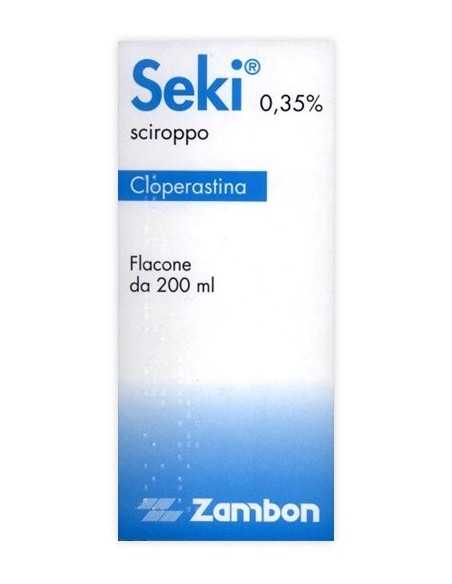 Anche se gli effetti secondari centrali della cloperastina sono ridotti, il medicinale può interagire con sostanze sia depressive che stimolanti del sistema nervoso centrale. Non sono stati condotti studi d’interazione sull’uomo. Non è raccomandato, sia in pazienti adulti che in bambini, l’uso concomitante di Seki con: - Alcool; - Antistaminici; - Anticolinergici; - Sedativi. Non è noto se in età pediatrica l’entità delle interazioni sopra riportate sia simile a quella in età adulta. Non esistono informazioni in merito ad eventuali interazioni del farmaco con i test di laboratorio. Non sono disponibili informazioni in merito all’interazione della cloperastina con gli alimenti, pertanto non se ne raccomanda l’assunzione durante i pasti.