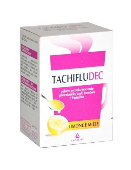 Posologia Adulti e bambini al di sopra dei 12 anni 1 bustina ogni 4-6 ore e fino ad un massimo di 3 bustine nelle 24 ore. Il medicinale non deve essere usato per più di 3 giorni consecutivi senza consultare il medico. Popolazione pediatrica Bambini al di sotto dei 12 anni TACHIFLUDEC gusto limone, limone e miele è controindicato nei bambini di età inferiore ai 12 anni (vedere paragrafo 4.3). Modo di somministrazione Sciogliere il contenuto di 1 bustina in mezzo bicchiere di acqua molto calda e, a piacere, diluire con acqua fredda per raffreddare e dolcificare come si desidera.